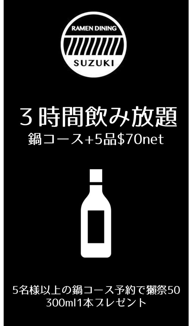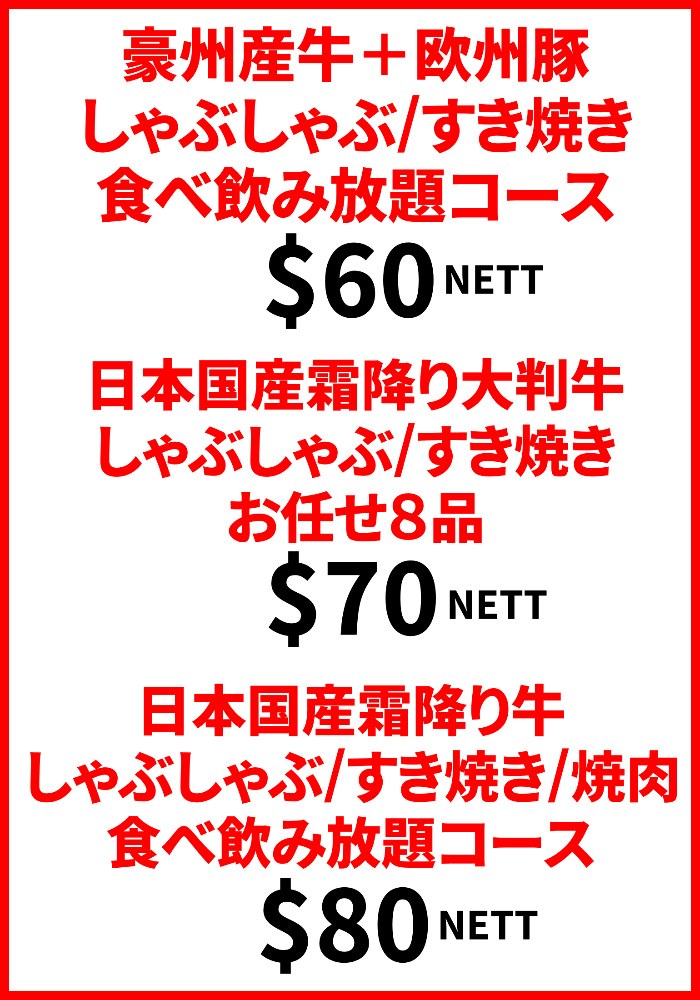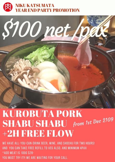 黒豚しゃぶしゃぶ+2時間飲み放題 $100 net/pax