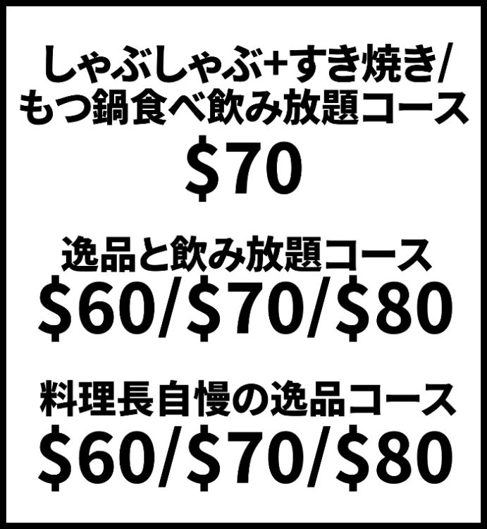 - 飲み放題付コース $60++