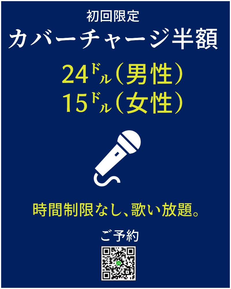 男$48・女性$30でカラオケ歌い放題のカウンター+座席バーです。