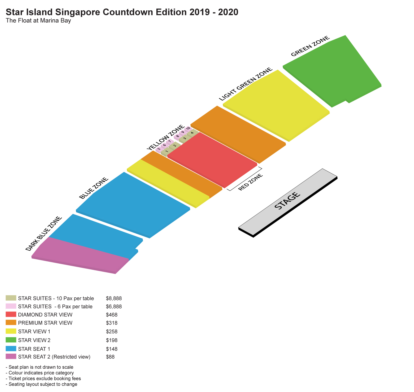 シンガポールカウントダウン花火のシーティングと価格はこれ。