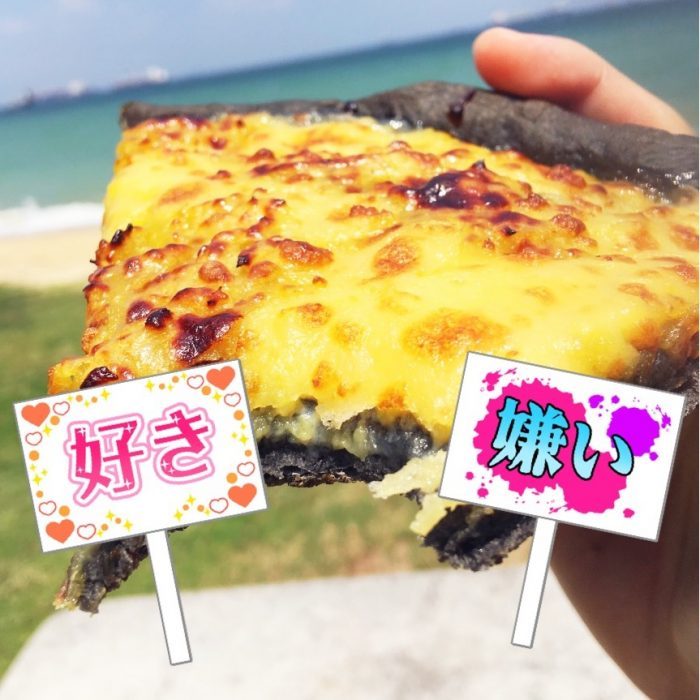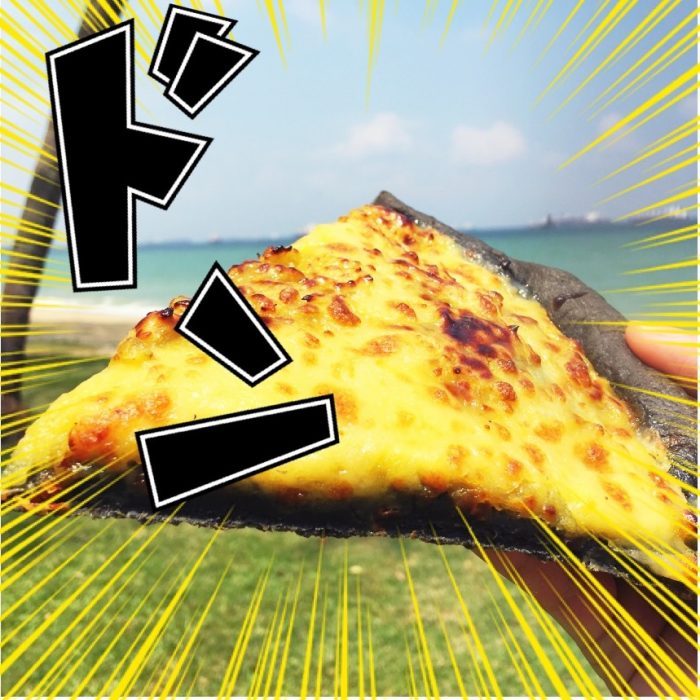 見た感じだとチーズピザっぽいけど、なぜか生地が黒いw