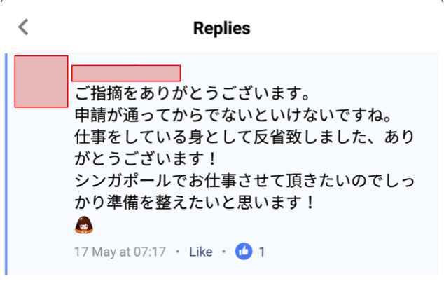 何あぶないって? MOMに捕まるし、、警察も出てくるかもしれない。 逮捕されたら、追放され、、 もうシンガポールに数年は戻ってこれないリスクもある。 なのに この方は、、、 美容?スパ関係の人かな? 観光ビザで施術でもして、お小遣いを稼ごうとしたのかな?シンガポールビザなし違法営業でござる